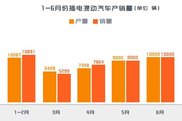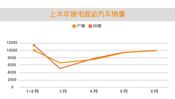由圖可知純電動汽車的銷量在5月、6月明顯回升且有繼續(xù)增長的趨勢,而插電混動汽車雖有回升但增長不夠快,總體趨勢是增長的。