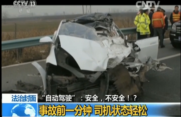 從之前的文章《據特斯拉事件談無人駕駛》中提到特斯拉首例自動駕駛事故,然而近日,CCTV13頻道的《法治在線》節目中,報道了一起今年1月份發生在京港澳高速公路上的事故,一輛特斯拉Model S追尾了停靠在路邊的道路清掃車,駕駛員高雅寧當場死亡。報道中提到,在事故之后的調查過程中,高雅寧的父親高巨斌發現事故中的Model S很可能Autopilot處于開啟的狀態。