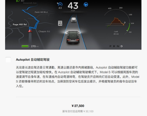 特斯拉中國官網Autopilot系統選裝價格,中文翻譯從自動駕駛改為自動輔助駕駛
