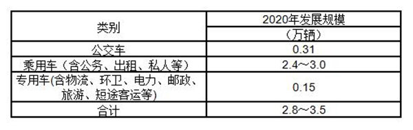 表3.1-1 至2020年各分類電動汽車發(fā)展規(guī)模