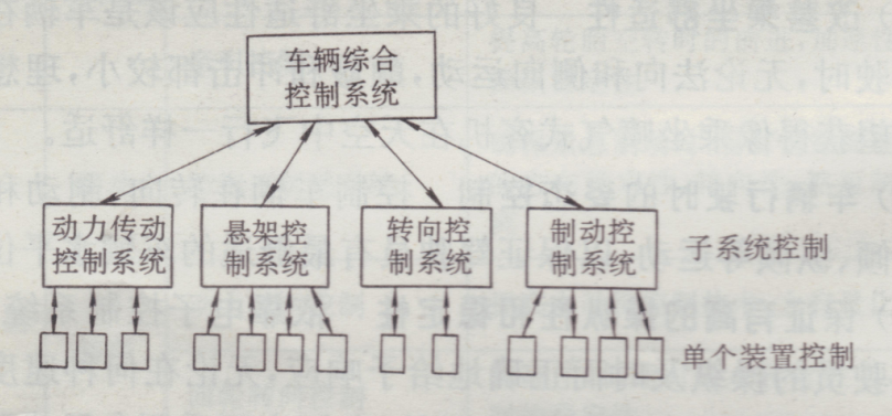 新能源汽車電子控制系統(tǒng)是有層次的,一般可以分成三個層次,如圖1—5所示。層次是車輛綜合控制系統(tǒng)。第二層次是各個子系統(tǒng),如制動控制系統(tǒng)、轉(zhuǎn)向控制系統(tǒng)、懸架控制系統(tǒng)和動力傳動裝置控制系統(tǒng)等。一輛車前后、左右四個制動裝置或四個懸架裝置的控制系統(tǒng)則屬于第三層次。