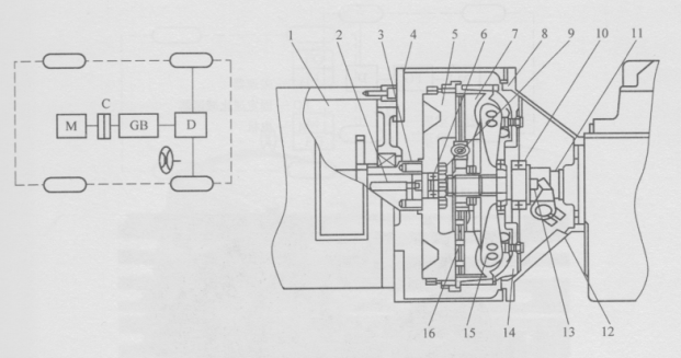C-離合器??D-差速器??GB-變速器??M-驅(qū)動電機
