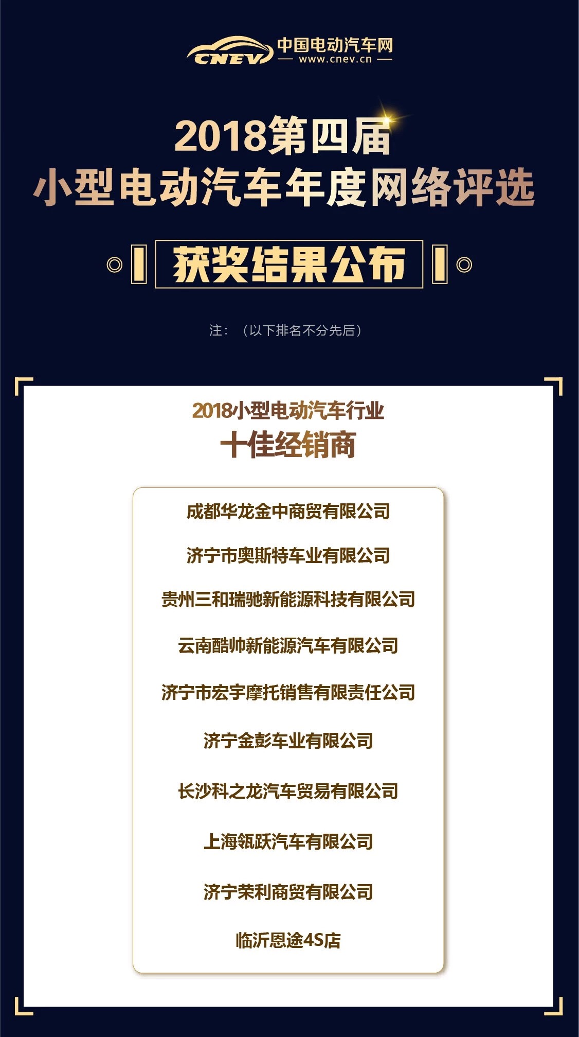12月6日,備受關注的2018第四屆小型電動汽車年度網絡評選獲獎名單正式出爐!