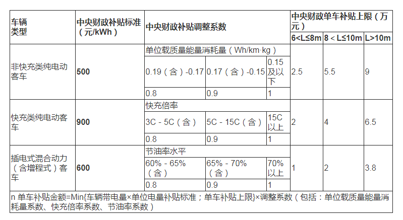 (一)新能源客車補(bǔ)貼標(biāo)準(zhǔn)。具體如下: